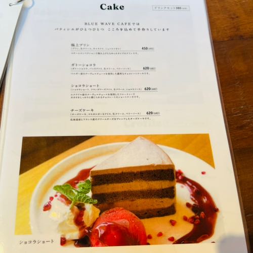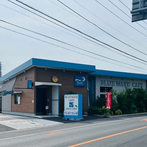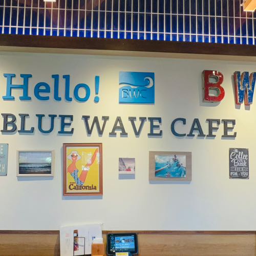 「BLUE WAVE CAFE」の大きな看板が目印で、道路沿いからもわかりやすい立地です。