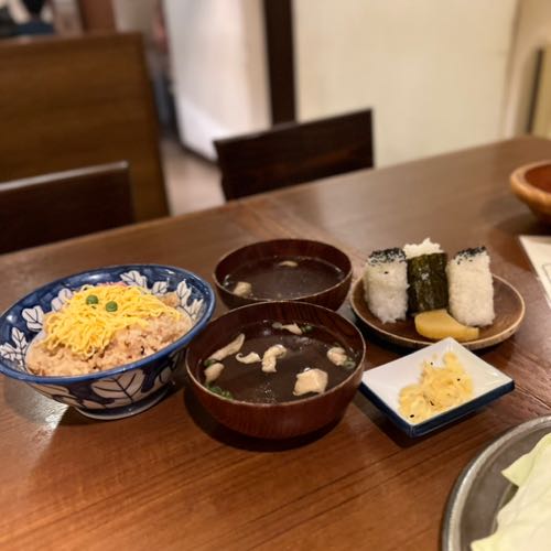 平日なのに満席で、1時間待ってようやく入店。電話連絡くれるので、周辺をお散歩できます。おやどりは完売で、今回は「わかどり」を注文しました。