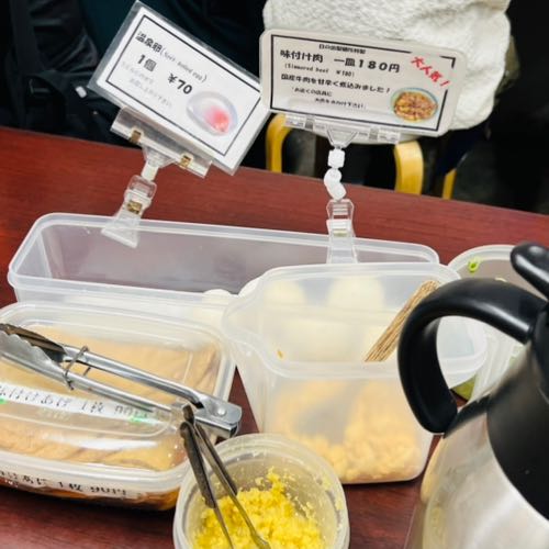 営業はわずか1時間。列に並んでも回転が速かった。並んでいる最中にあったかいか冷たいかとオーダーをします。トッピングは自己申告制。