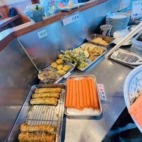 名物の長天は海老の風味が効いていて、すり身のふわふわ感が絶品でした。席についたら「お水はあちら、おでんもどうぞ」など親切におしえてくれて助かりました!
