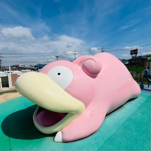 - ヤドン公園(滝宮公園):ヤドンの滑り台や遊具で童心に戻れる場所。ポケふたも設置。