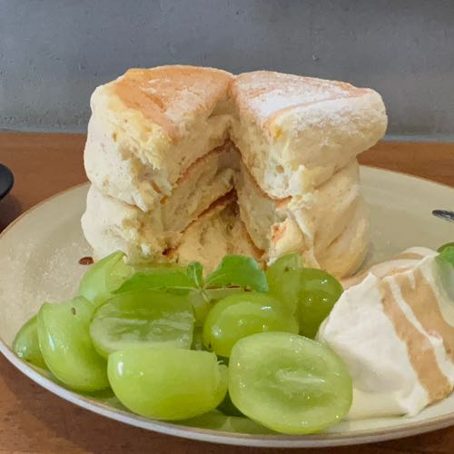 10月限定のパンケーキを食べに行く予定だったのに…メニューに「シャインマスカットパンケーキ」の文字を見つけた瞬間、心が揺らぎました。