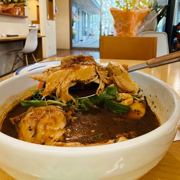 チキンレッグはスプーンでほぐれるほど柔らかく、スープにも旨みが溶け込んでいました。
