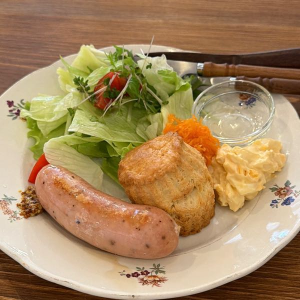 スコーンの香ばしさとハチミツの甘さ、プリッとしたソーセージの組み合わせが最高でした。
