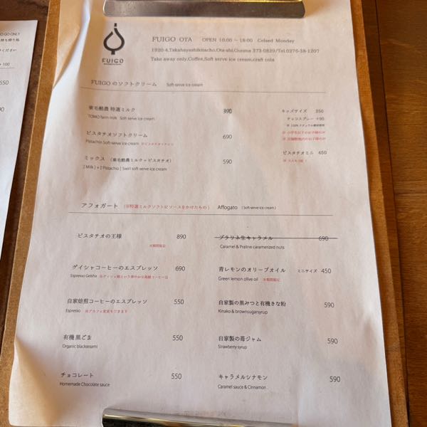 こちらはFUIGOのソフトクリームメニュー
