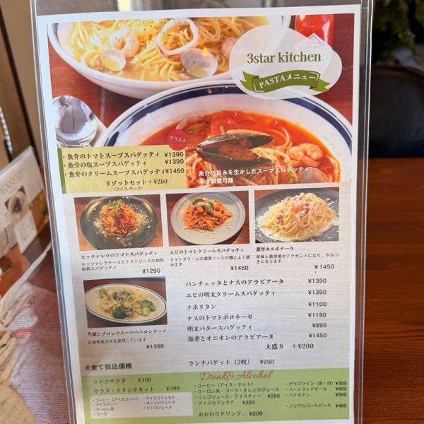 メニューを開くと、パスタからステーキ、グラタンまで種類の多さにワクワク!