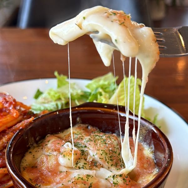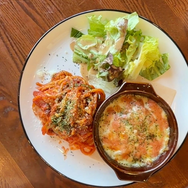 - ハーフグラタン:この日は明太子グラタン。私は少し明太子が苦手なのですが、クリーミーなソースに塩気がピリッと効いていて、好きな人にはたまらない味わいだと思います。