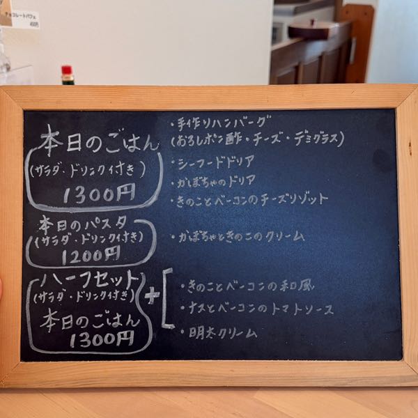 その日の内容はお冷やと一緒に運ばれてくる黒板でチェックします。