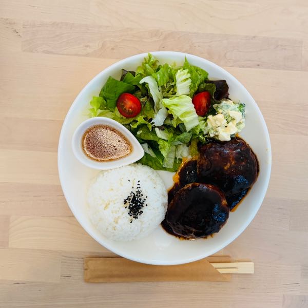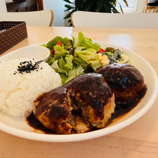 運ばれてきたのは、ふっくらとしたハンバーグが二つものった豪華なワンプレート。