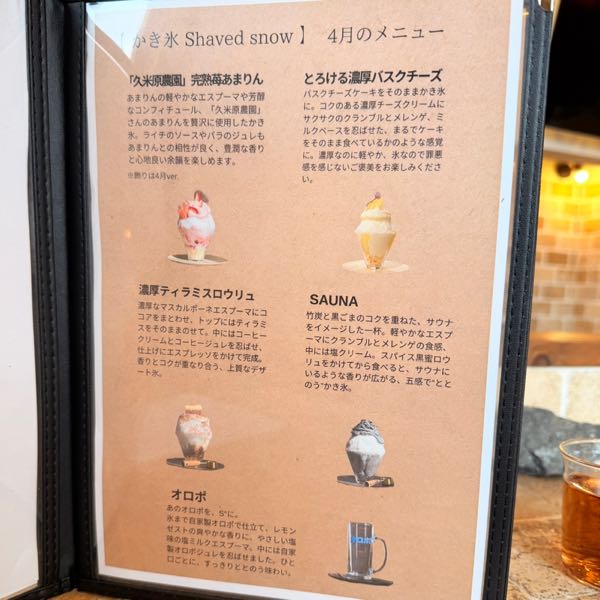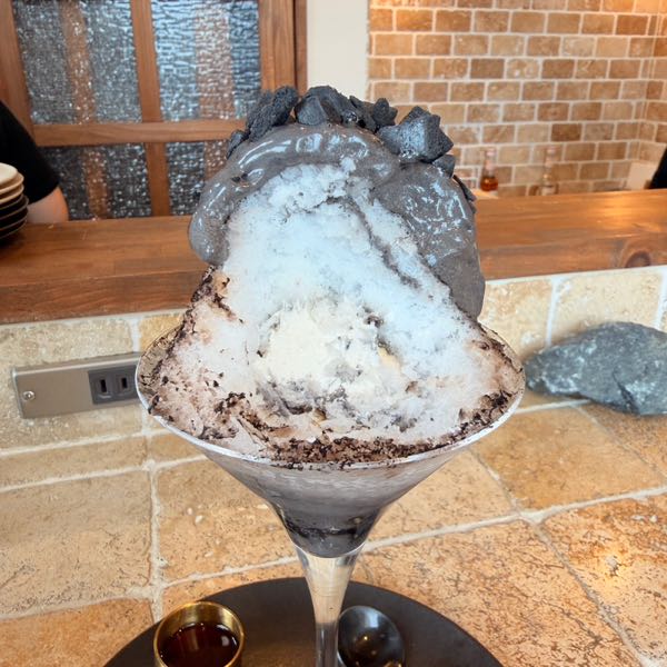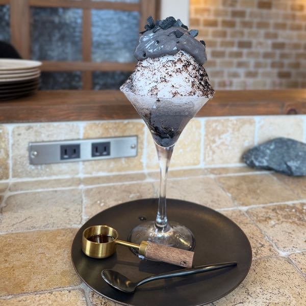 4月のメニューに「サウナストーンのような真っ黒なかき氷」があると聞き、その不思議なビジュアルを確かめたくて訪問しました。