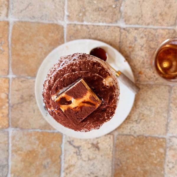 トップにドーンと乗った濃厚なバスチーが贅沢!マスカルポーネとコーヒーの苦味、そしてエスプレッソをかけて仕上げる演出は、スイーツ好きにはたまりません。