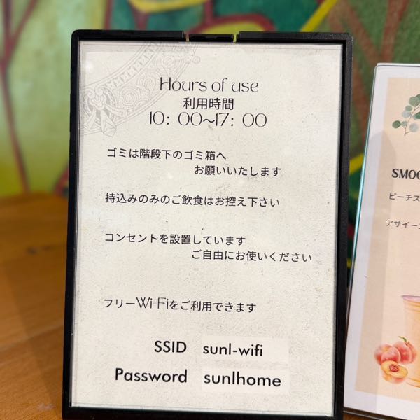 パスワードも分かりやすく掲示されていて、ノマドワーカーにもとっても優しい設計です。